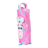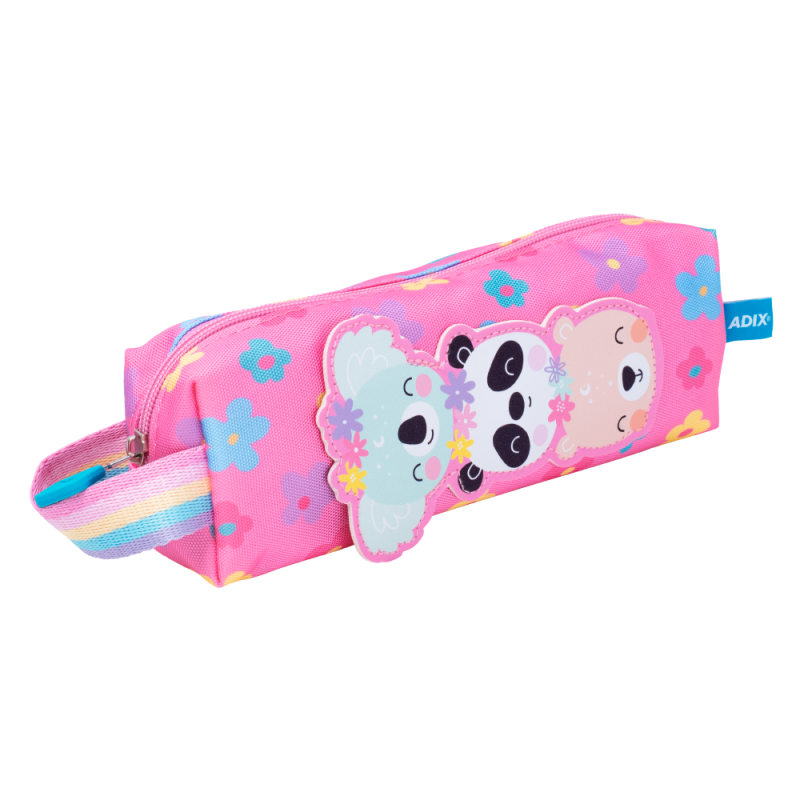 Práctico y resistente, su formato rectangular y con correa de agarre, lo hacen perfecto para el uso diario en el colegio, la casa o la mochila.